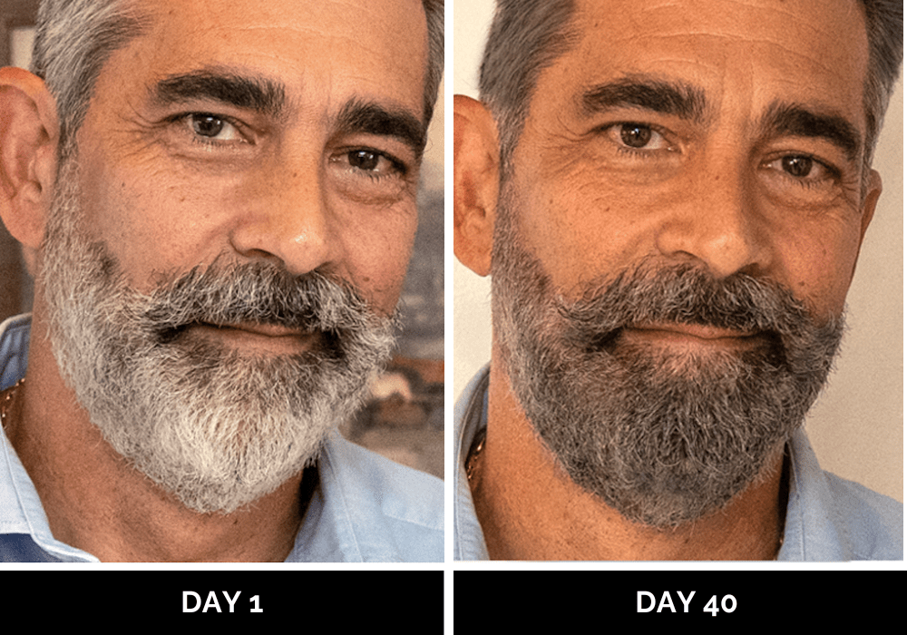 - Gradually darkens white or light gray hair on men's beards, giving you a natural-looking darker facial hair color.